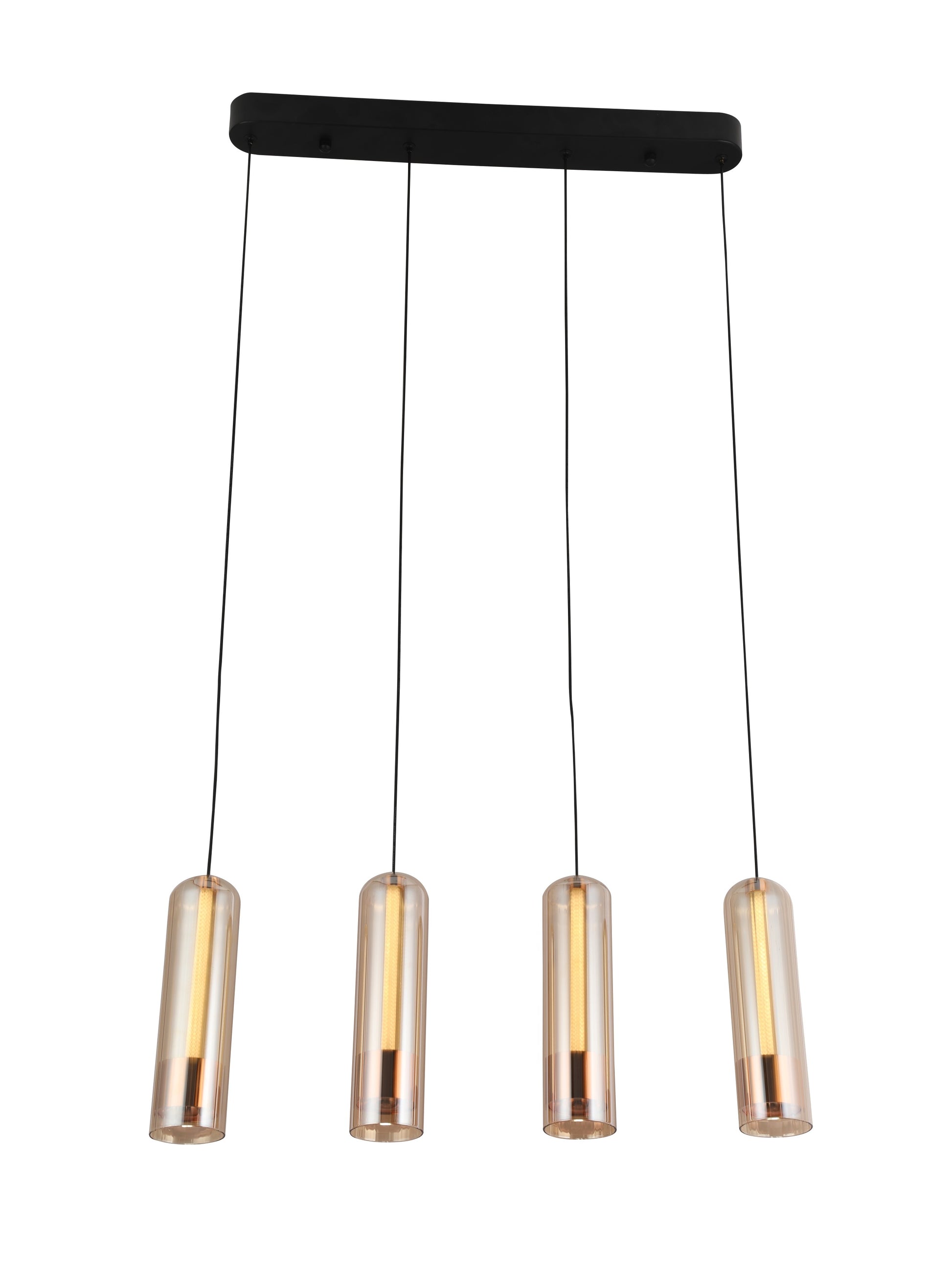 Elevate your space with this exquisite glass pendant light, a masterpiece of modern design. Its sleek, cylindrical form is crafted from high-quality glass with a shimmering, metallic finish that exudes sophistication and luxury. The pendant features a unique honeycomb diffuser, casting a warm and inviting glow that creates a captivating ambiance. The minimalist black cord complements the light's contemporary aesthetic, seamlessly blending with any interior style. This statement piece is perfect for adding a touch of opulence to living rooms, dining areas, or foyers, transforming your home into a haven of refined elegance..