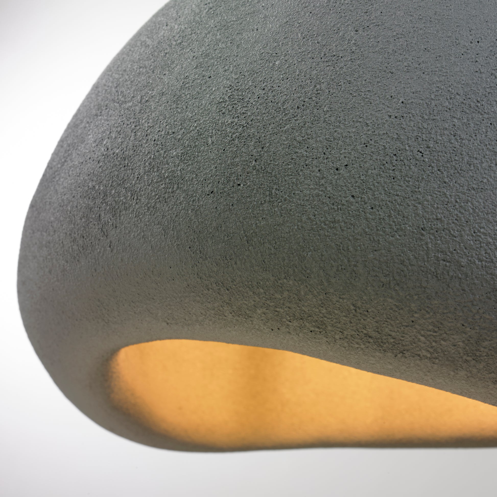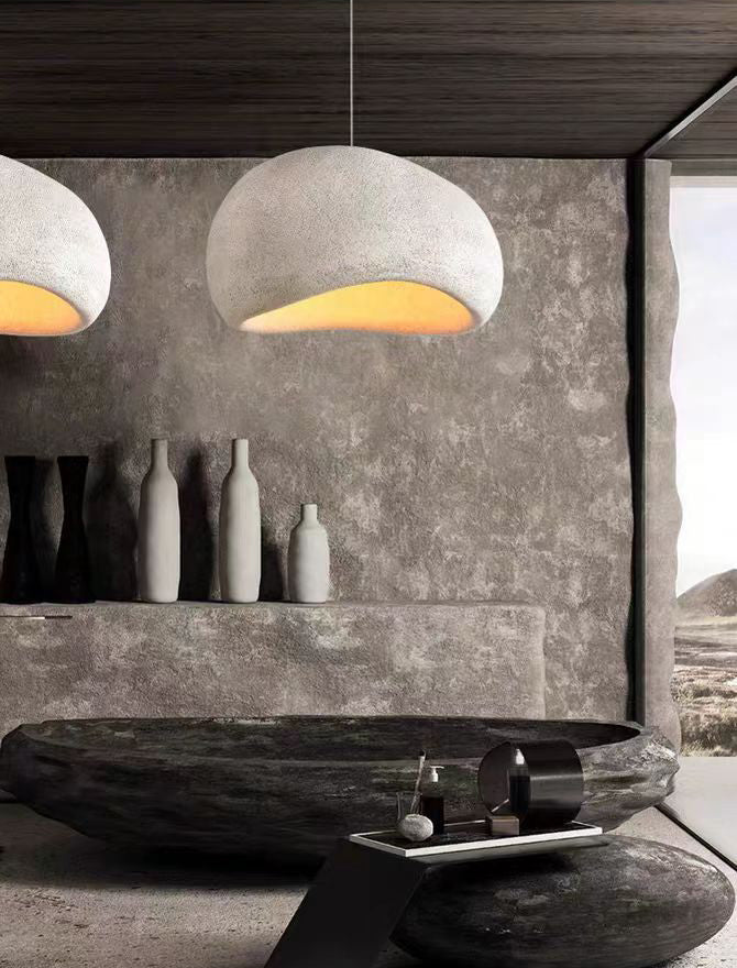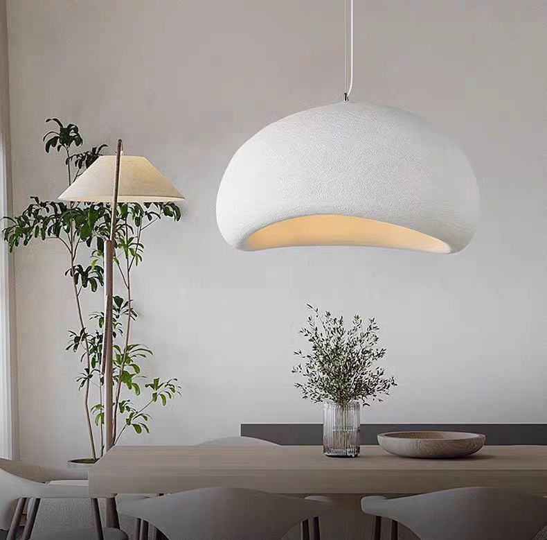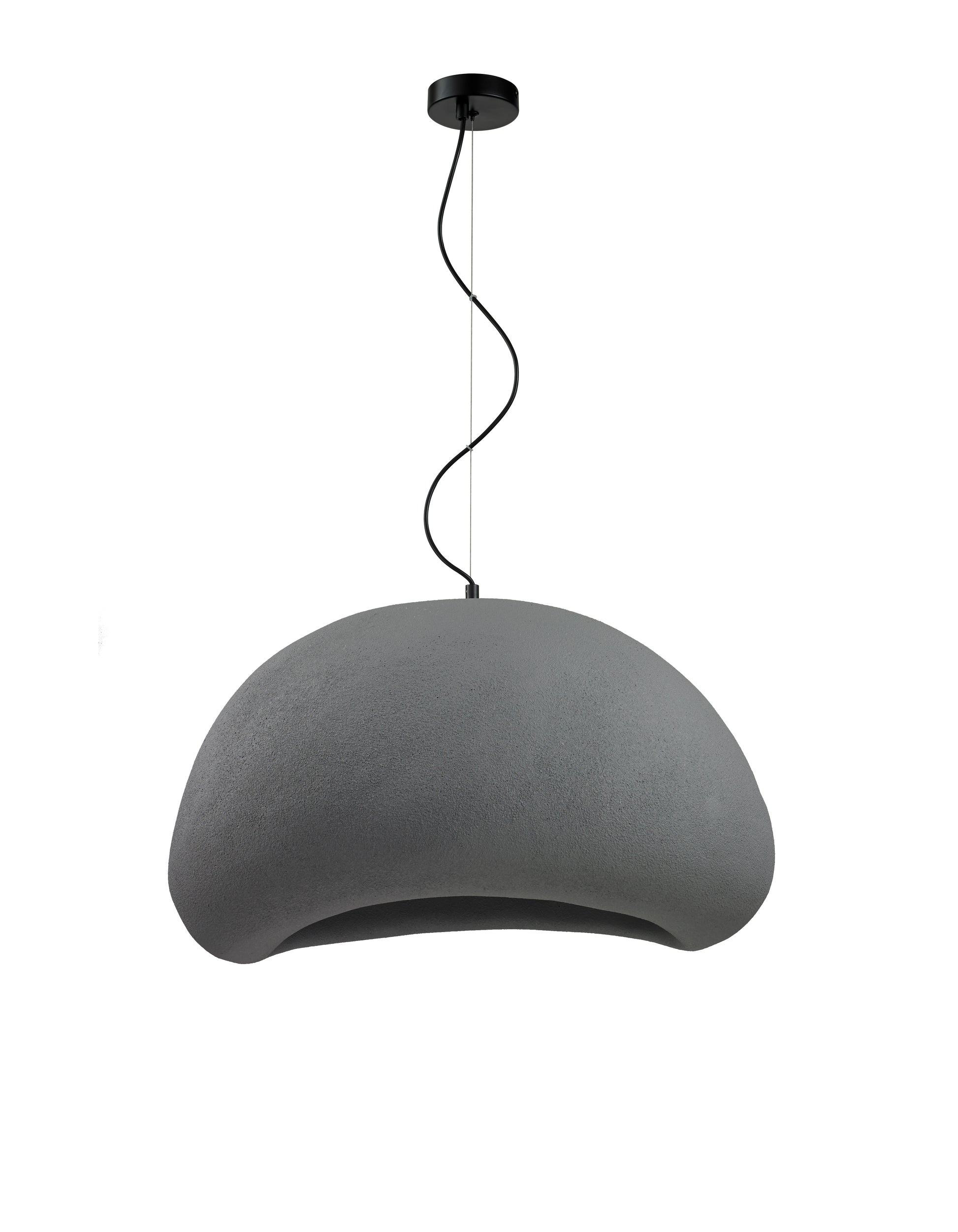 This modern pendant light fixture is a perfect blend of elegance and contemporary style. Featuring a large, dome-shaped fibera glass shade with a textured dark exterior, it exudes sophistication. The interior of the dome is finished in a warm gold tone, providing a stunning contrast that enhances its visual appeal and ensures a warm, inviting glow when illuminated. Suspended from a sleek black cable that gracefully curls at the top before connecting to a matching black ceiling canopy, this pendant light is an exquisite statement piece. Ideal for dining areas, living rooms, or entryways, it combines functionality with high-end design, making it a luxurious addition to any space.