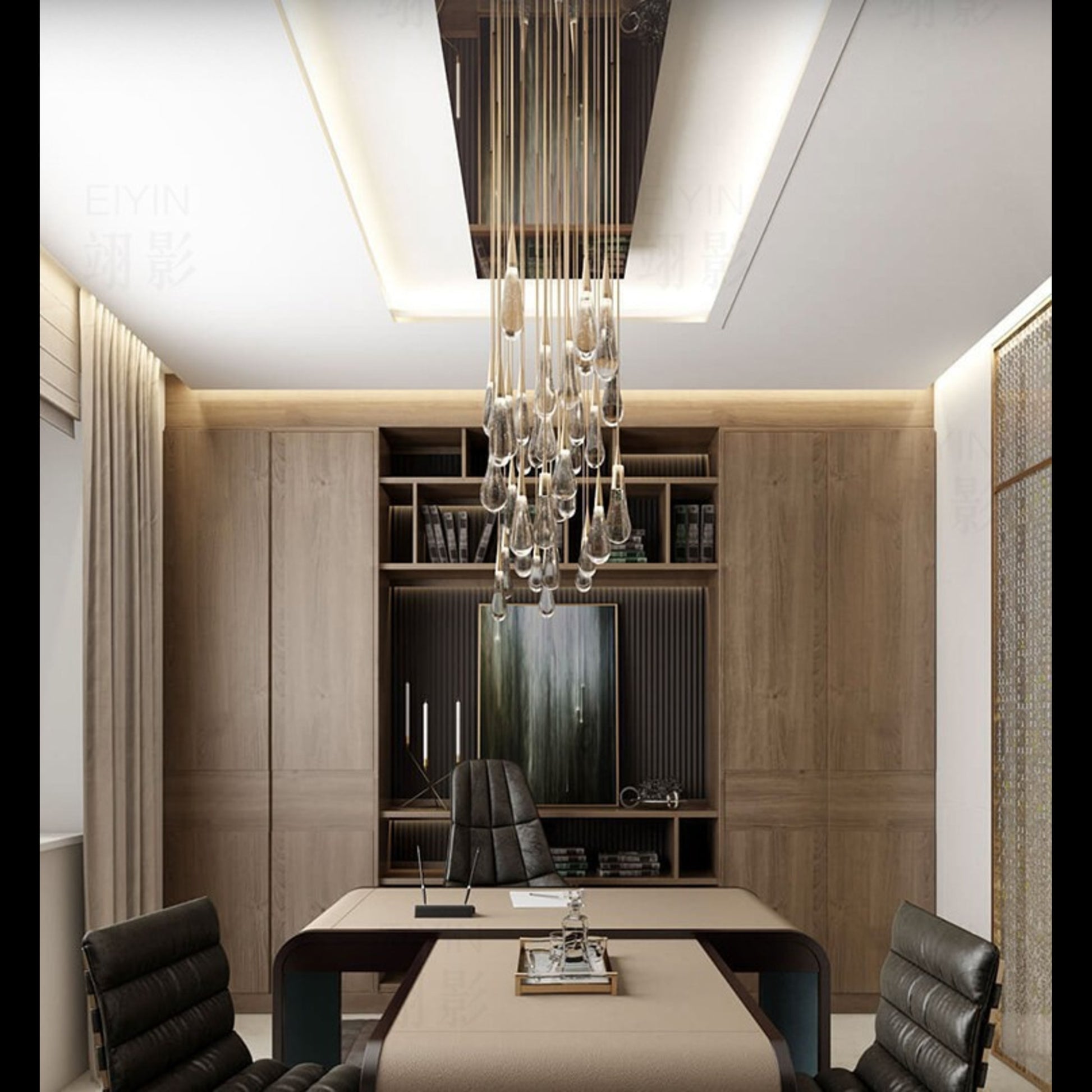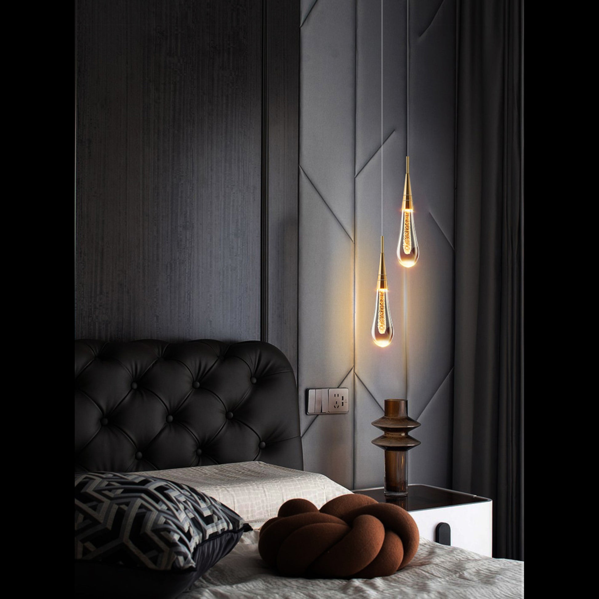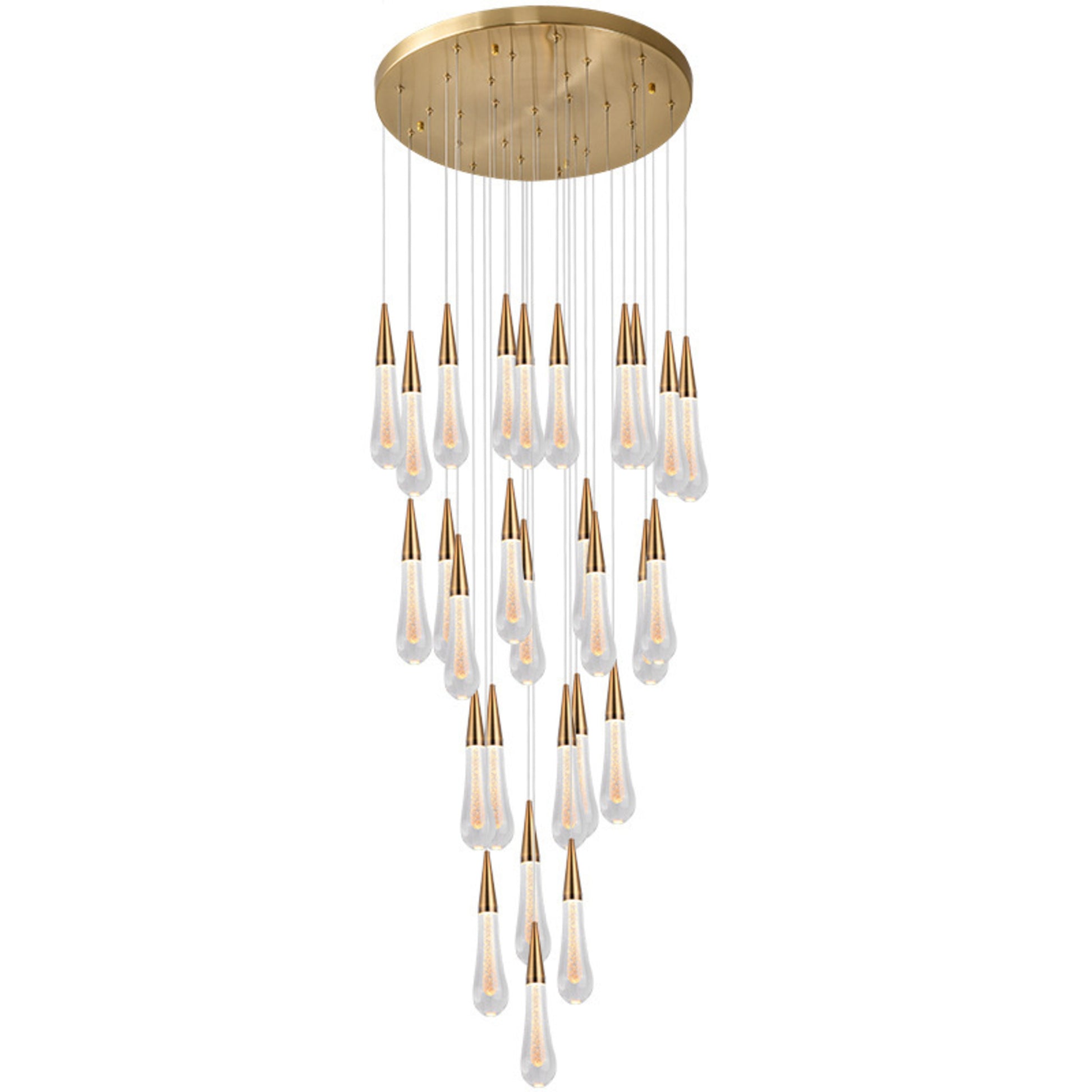 This luxurious pendant light fixture is a stunning blend of modern elegance and sophistication. Featuring a collection of slender, vertical elements that cascade gracefully from a circular canopy, each element is designed with a sleek, cylindrical body that tapers to a point, reminiscent of icicles or stalactites. The high-quality materials, with a metallic finish in brass or gold, add a touch of opulence. This pendant light creates a dramatic visual impact, making it an exquisite statement piece for any high-end interior space. Perfect for adding ambient illumination and an artful aesthetic, it promises to elevate the style of dining areas, living rooms, or grand foyers.