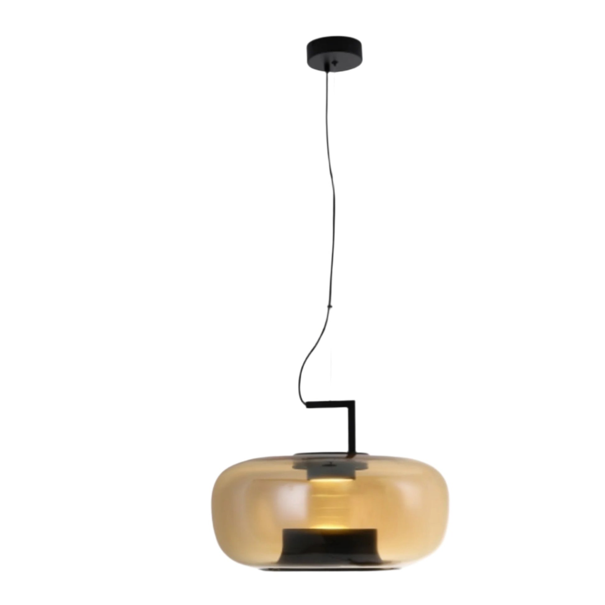 Discover the allure of ambient lighting with our Splendore Pendant Light. This exquisite piece is a symphony of design and elegance, featuring a sleek black suspension cable that gracefully descends from a minimalist ceiling mount. At its end, a captivating orb of light emerges, encased in a luxurious glass shade with a warm amber hue, promising to envelop any room in a soft, inviting glow. The glass shade’s organic form draws inspiration from the timeless beauty of nature’s curves, while its translucent quality ensures an even diffusion of light, creating an atmosphere of serene luxury. Accented with a tasteful black top section, the shade connects seamlessly to the cable, adding a contemporary touch to the classic design. More than just a source of light, this pendant is a statement art piece that elevates the aesthetic of any high-end interior. Whether displayed alone or in a cluster for a dramatic effect, it captivates and enchants, becoming the centerpiece of conversation. Embrace the fusion of style and function with our Splendore Pendant Lightβ€”where unparalleled elegance meets the perfect ambiance.