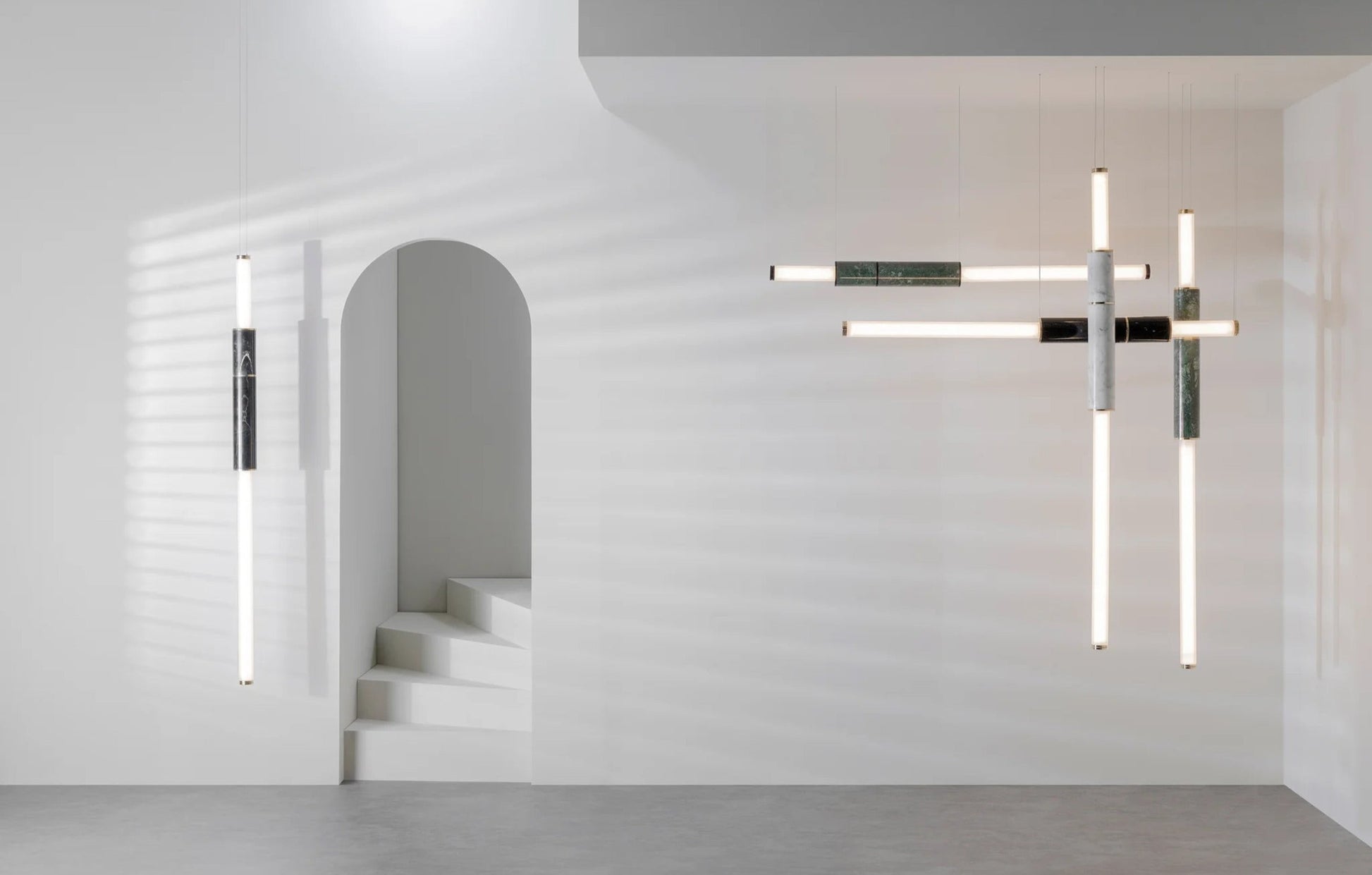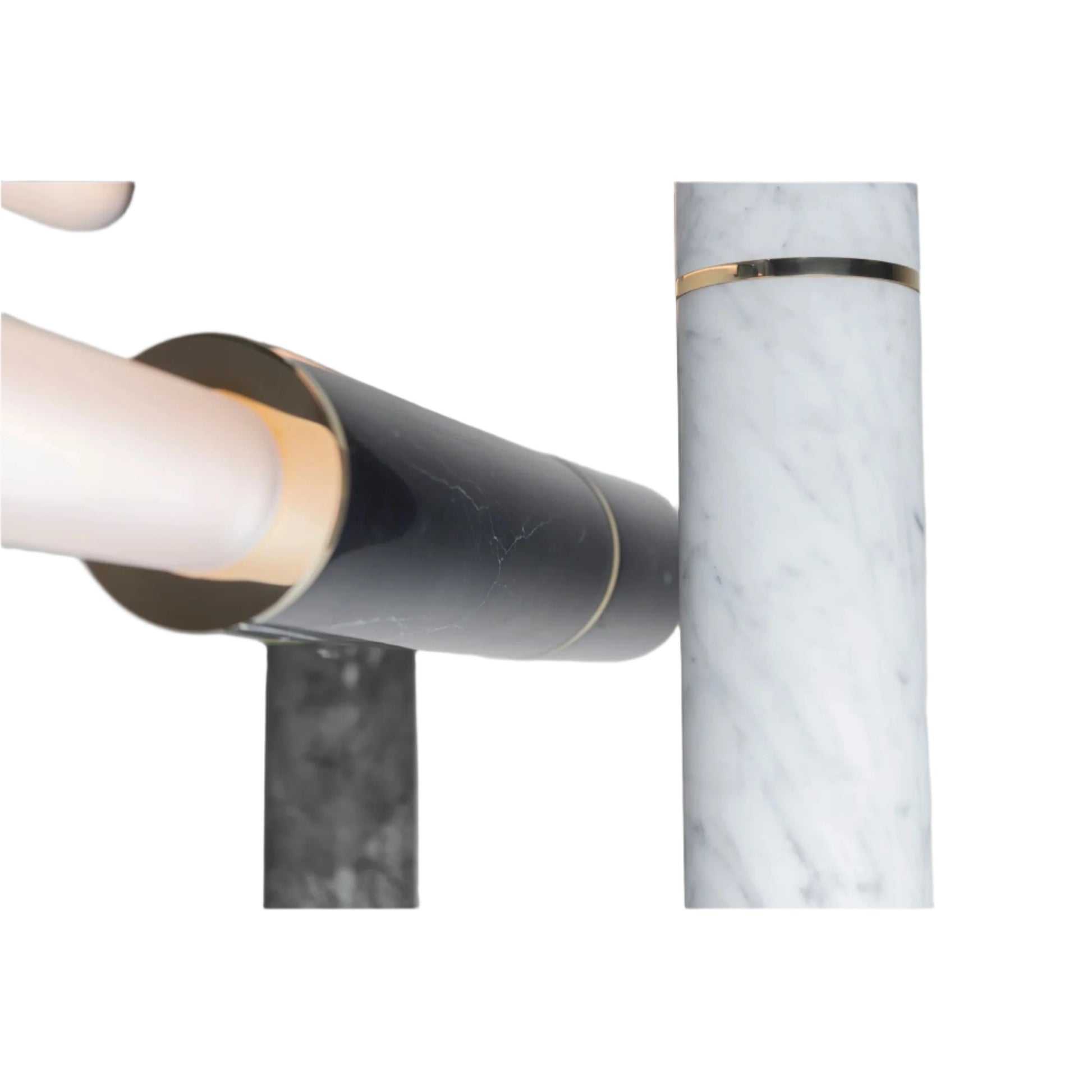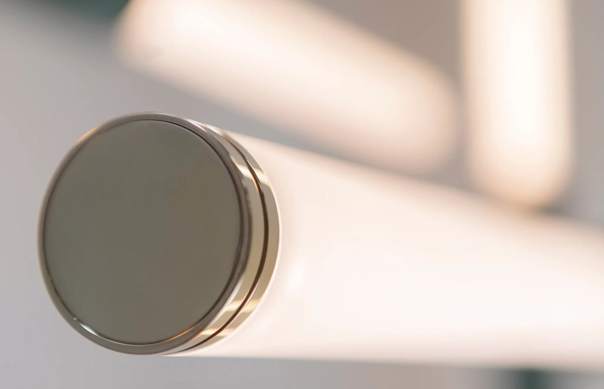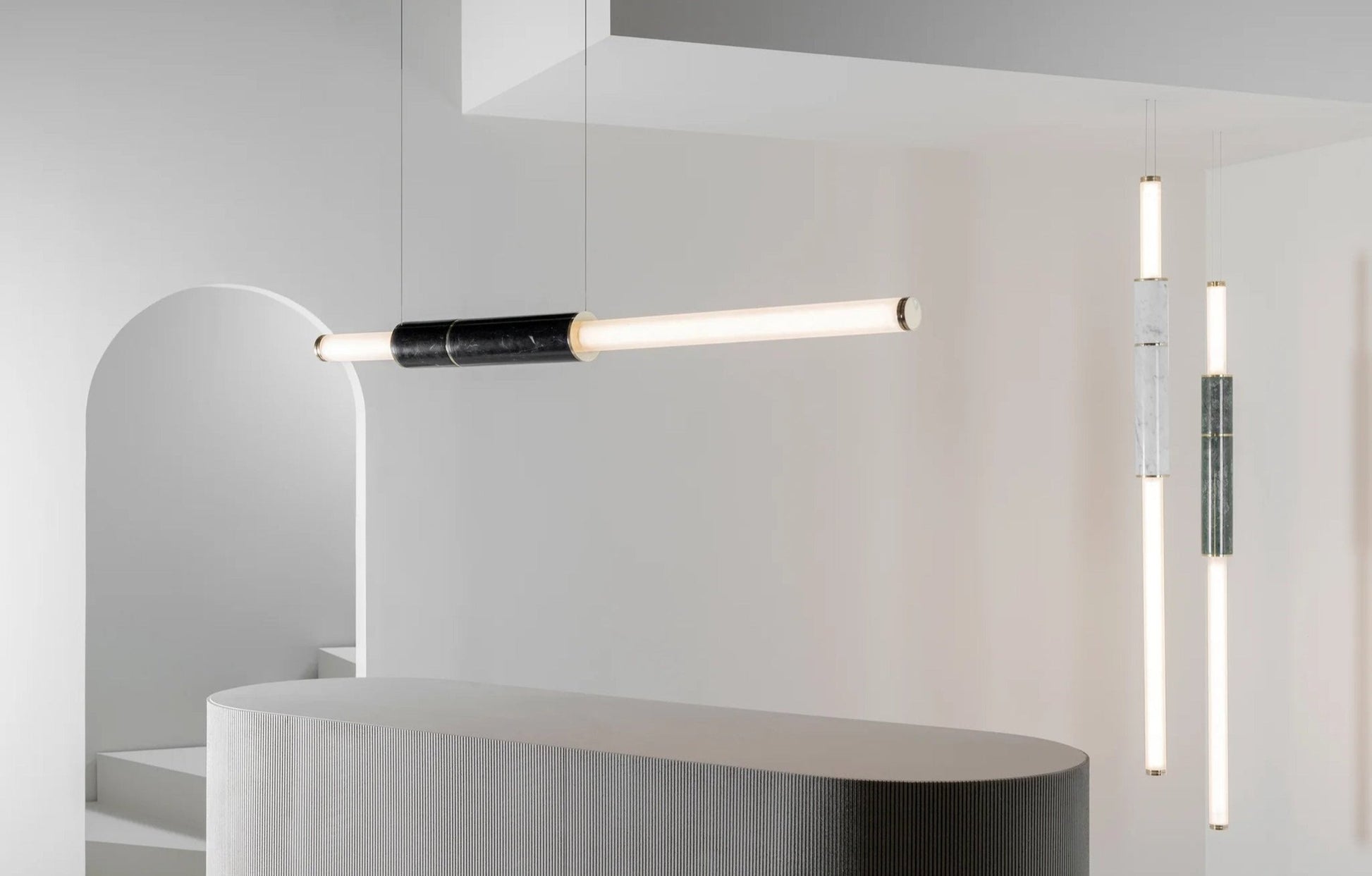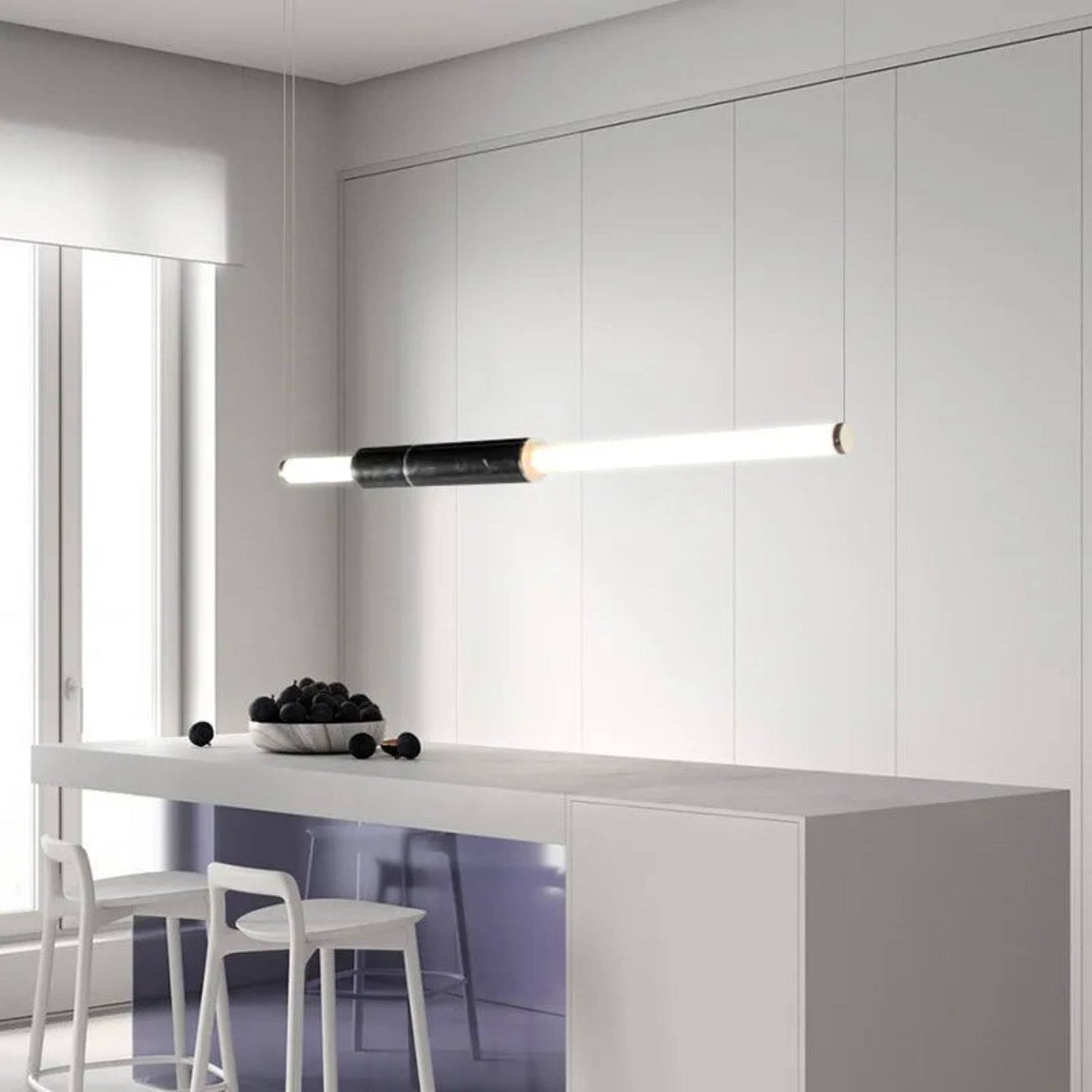 Introducing our exquisitely crafted Lustrare pendant light, a harmonious blend of modern design and timeless elegance. This piece features a sleek cylindrical form with a sophisticated dual-tone finish, where the subtle contrast between materials adds a refined touch to any interior space. The warm, diffused light emitted from its elongated body creates a serene ambiance, perfect for both intimate settings and grand interiors.